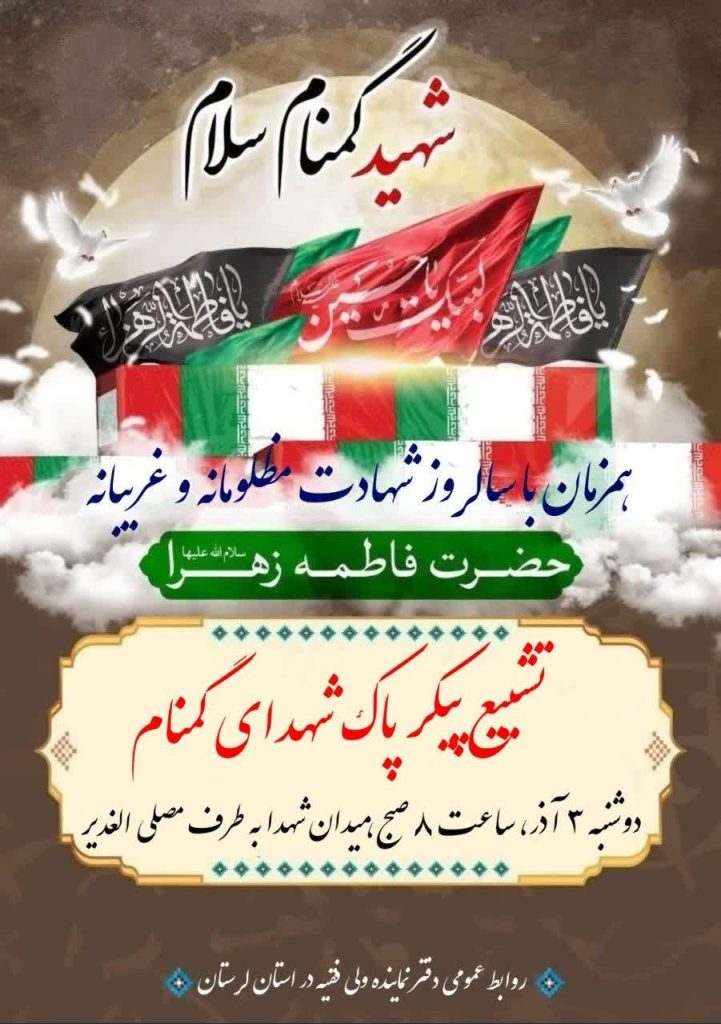 🔳 از کلیه مردم ولایتمدار و شهید پرور شهرستان خرم آباد دعوت میشود در مراسم تشییع پیکر پاک و مطهر شهدای گمنام شرکت فرمایید.