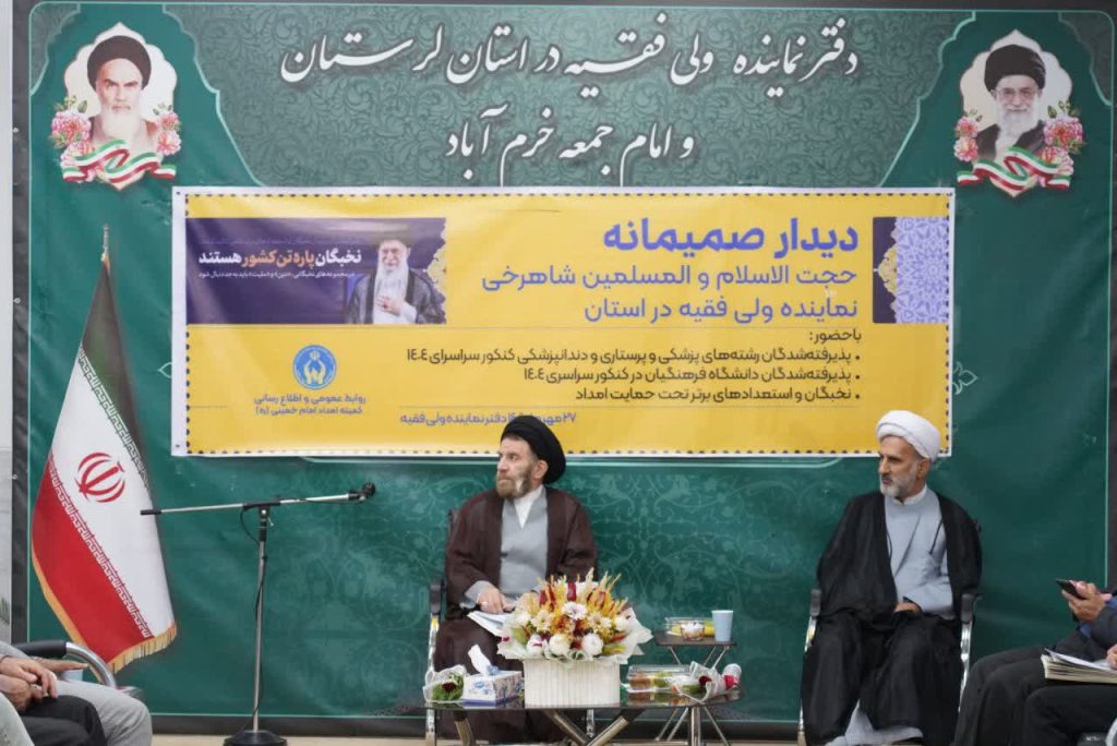 پذیرفته شدگان رشته‌های پزشکی و پرستاری و دندانپزشکی کنکور سراسری ۱۴۰۴ ، پذیرفته شدگان دانشگاه فرهنگیان در کنکور سراسری ۱۴۰۴ و نخبگان و استعدادهای برتر تحت حمایت کمیته امداد امام خمینی رحمت الله علیه با حجت الاسلام والمسلمین دکتر سید احمدرضا شاهرخی نماینده ولی فقیه در استان لرستان و امام جمعه خرم آباد در محل دفتر دیدار کردند.
